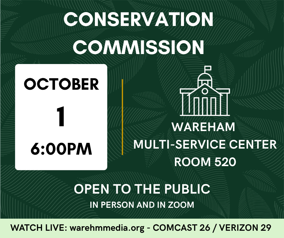 The Conservation Commission will convene Wednesday October 15th, 6:00PM at the Multi-Service Center.