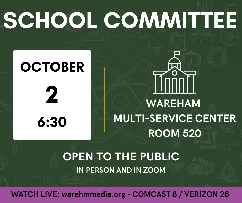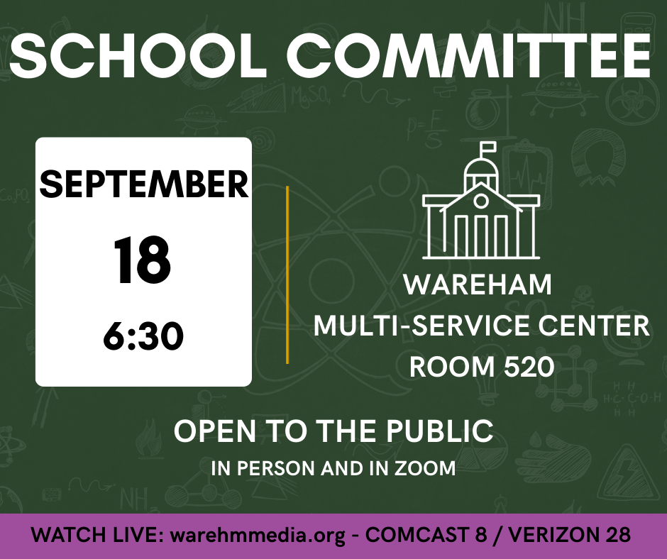 The School Committee will convene Thursday September 18th, 6:30PM at the Wareham Multi-Service Center.
