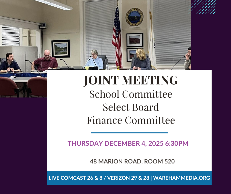 The Select Board, Finance, and School Committee will convene Thursday December 4th, 6:30PM.
