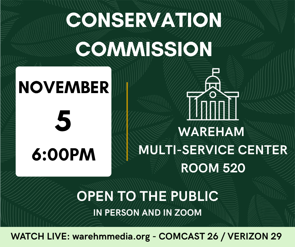 The Wareham Conservation Commission will convene Wednesday November 5th, 6:00PM at the Wareham Multi-Service Center, 48 Marion Road, Room 520.